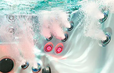 Jacuzzi® è la prima azienda al mondo ad aver integrato la luce ad infrarosso all’idroterapia in vasche idromassaggio e swim spas. L’azione della luce rossa e delle onde infrarosse, con lunghezze d’onda rispettivamente di 600 nm e 850 nm, conferiscono benefici ai tessuti cutanei superficiali e ai tessuti più profondi.