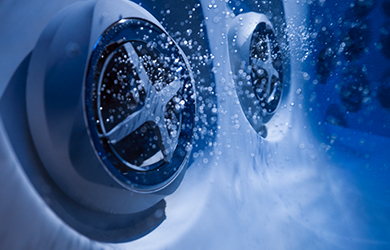Con TrueWater di Jacuzzi, trilioni di nanobolle piene di ossigeno presenti in vasca elimineranno continuamente i contaminanti per fornire acqua limpida e frizzante, priva di cloro al 99,9%