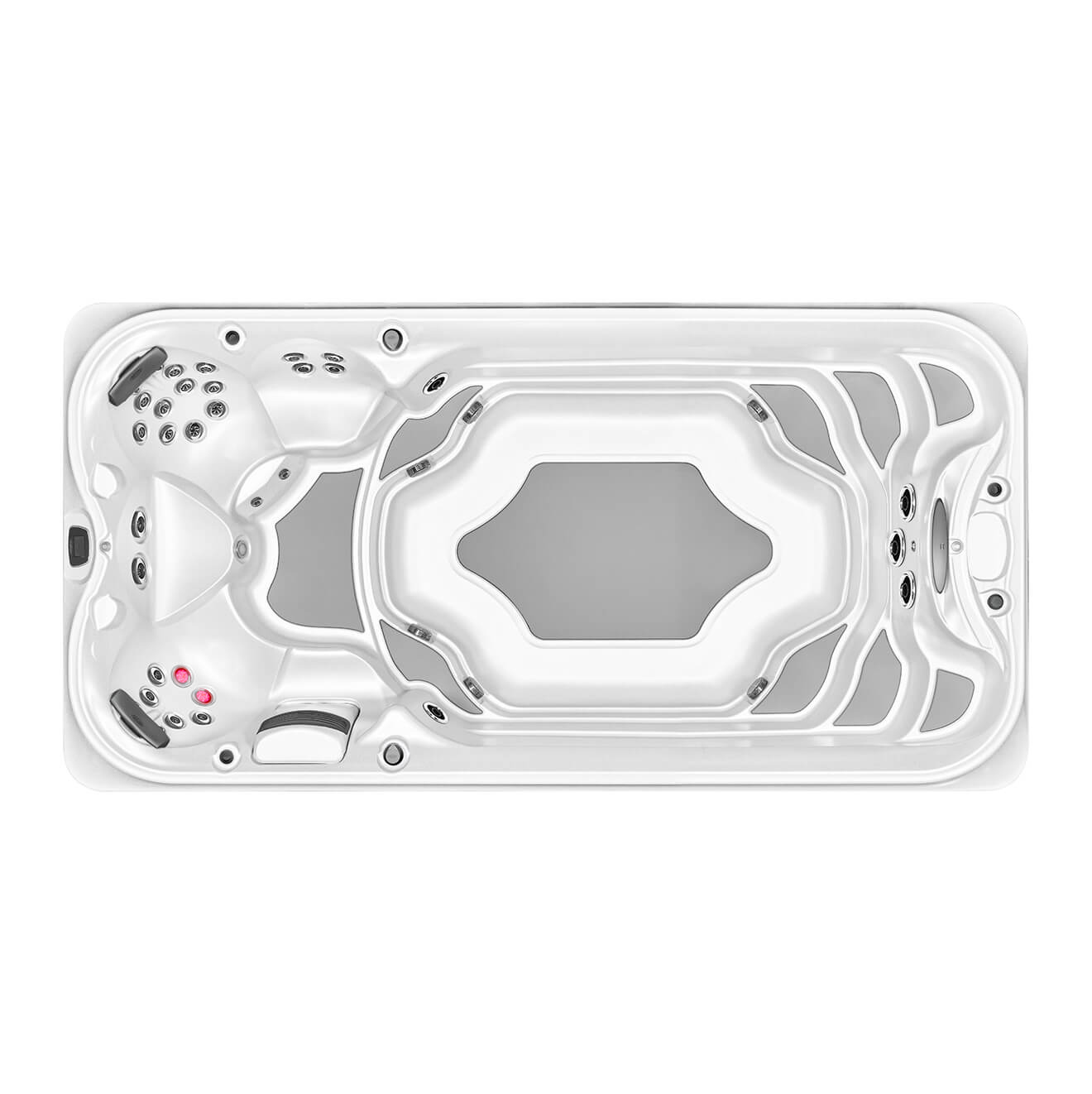 La serie SwimSpa di Jacuzzi offre un innovativo getto di galleggiamento SteadySteam, disposto sotto ai getti di nuoto contro corrente, per mantenere il nuotatore nella corretta posizione durante l’allenamento.