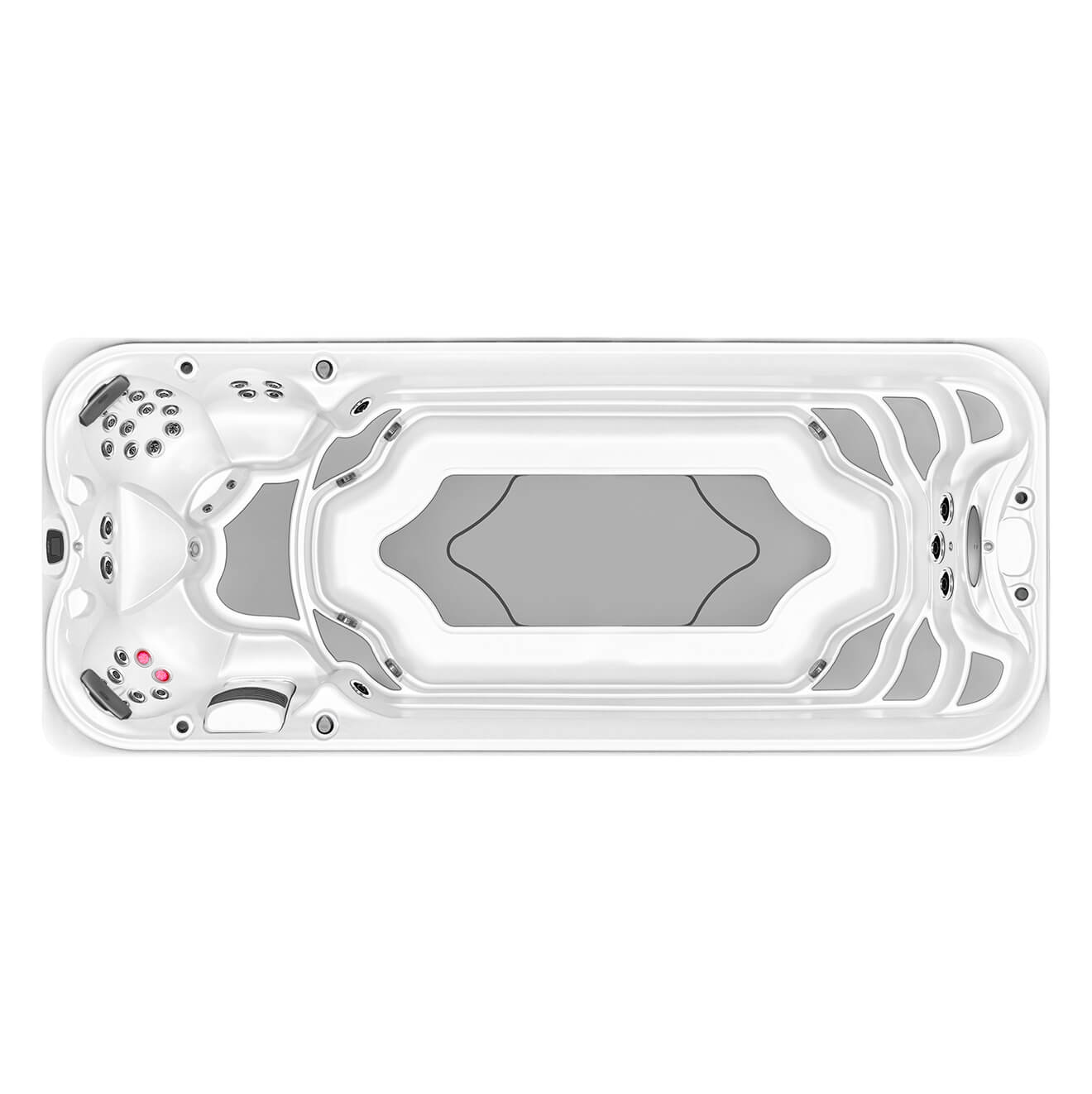 Con i suoi 564 cm di lunghezza, questa SwimSpa è l’ideale per chi desidera nuotare in uno spazio ampio e al contempo beneficiare delle comode sedute massaggianti.