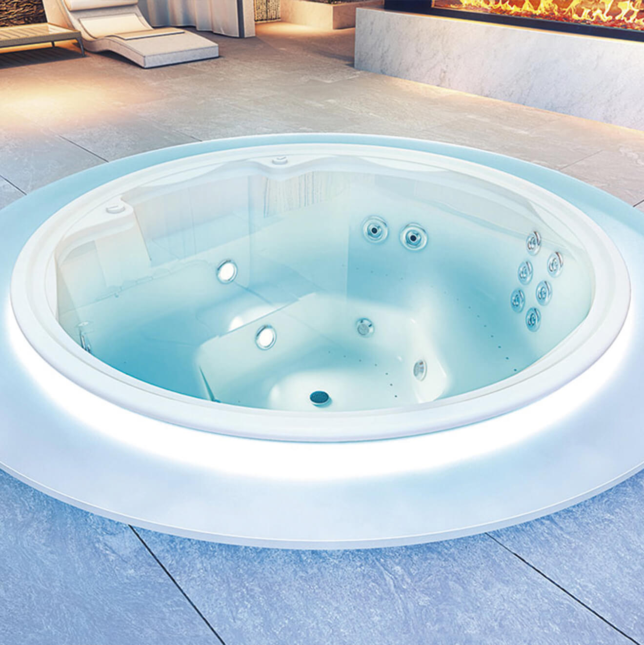 Vasca idromassaggio da incasso per un massaggio professionale e rilassante contro i muscoli tesi, per rinvigorire corpo e anima.